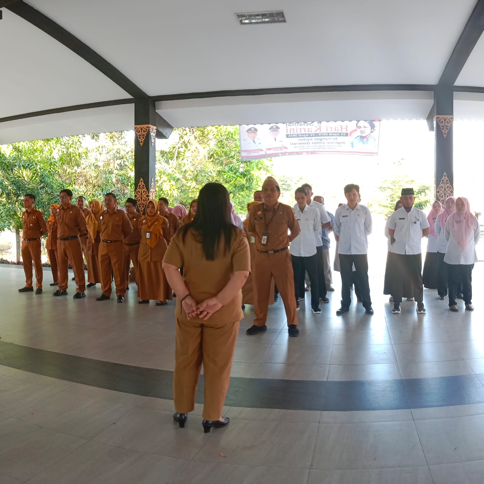 Kegiatan pelaksanaan Apel Senin, 20 April 2026 diikuti Karyawan/karyawati dan dinas di lingkungan Kantor Kecamatan Geyer.