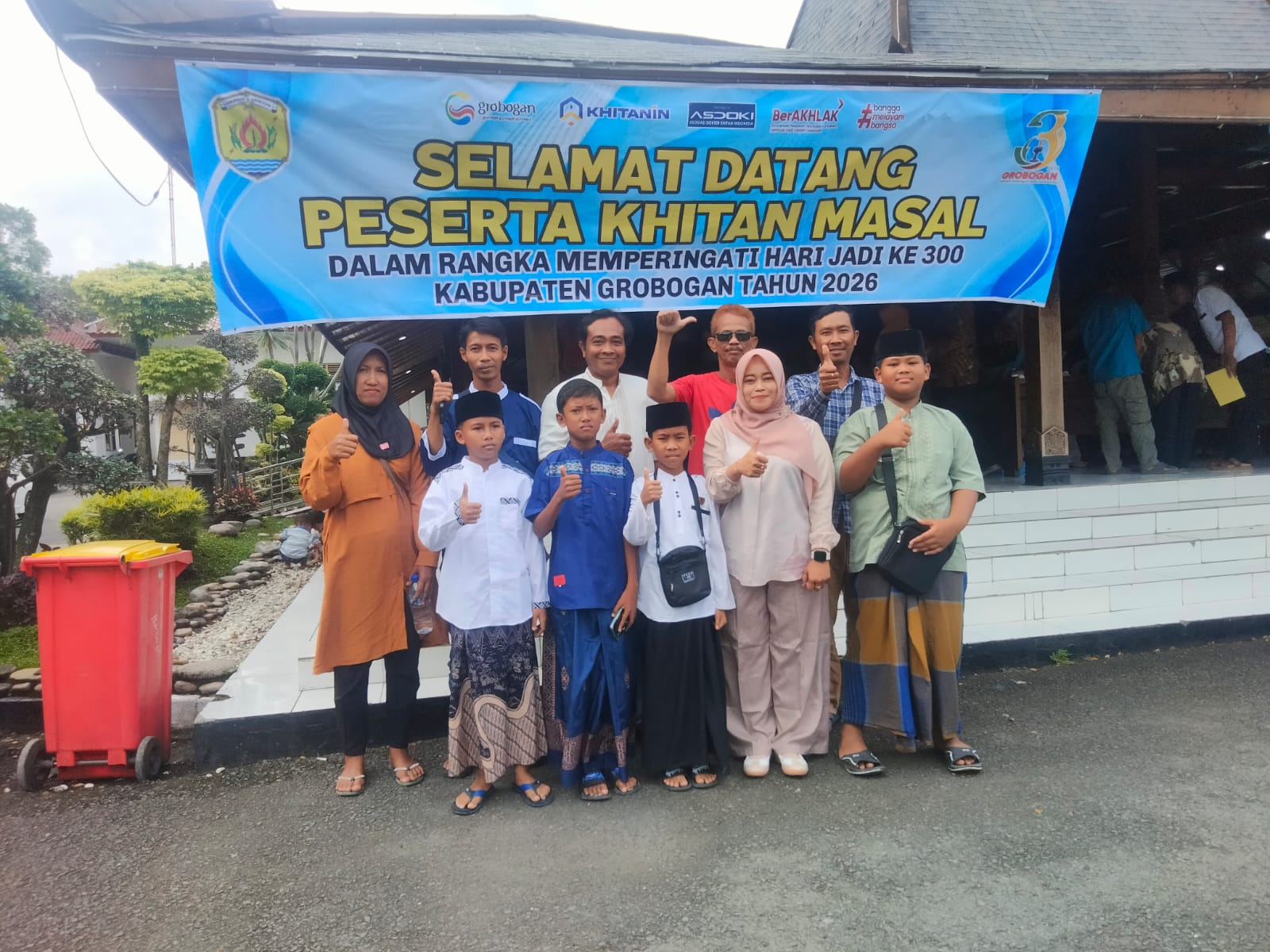 Dalam rangka memperingati Hari Jadi ke 300 Kabupaten Grobogan tahun 2026.Di adakanlah kegiatan khitan massl pada hari sabtu,tanggal 7 Februari 2026 di Pendopo Kabupaten Grobogan.Kegiatan yang merupakan bentuk kepedulian sosial dan upaya nyata dalam meningkatkan kesehatan anak-anak kita.Kegiatan ini menjadi wujud kebersamaan dan gotong royong antara pemerintah daerah,tenaga medis serta berbagai pihak yang berkontribusi demi terselenggaranya acara ini.Dengan adanya kegiatan ini dapat memberikan manfaat bagi masyarakat,serta menjadi langkah awal bagi generasi generasi yang sehat,berkhlak dan berdaya saing di masa depan.Ucapan terima kasih kami sampaikam pada seluruh panitia,tenaga medis,sponsor dan semua pihak yang mendukung kegiatan ini.Semoga segala kebaikan yang di berikan mendapat balasan yang belipat dari Allah SWT.