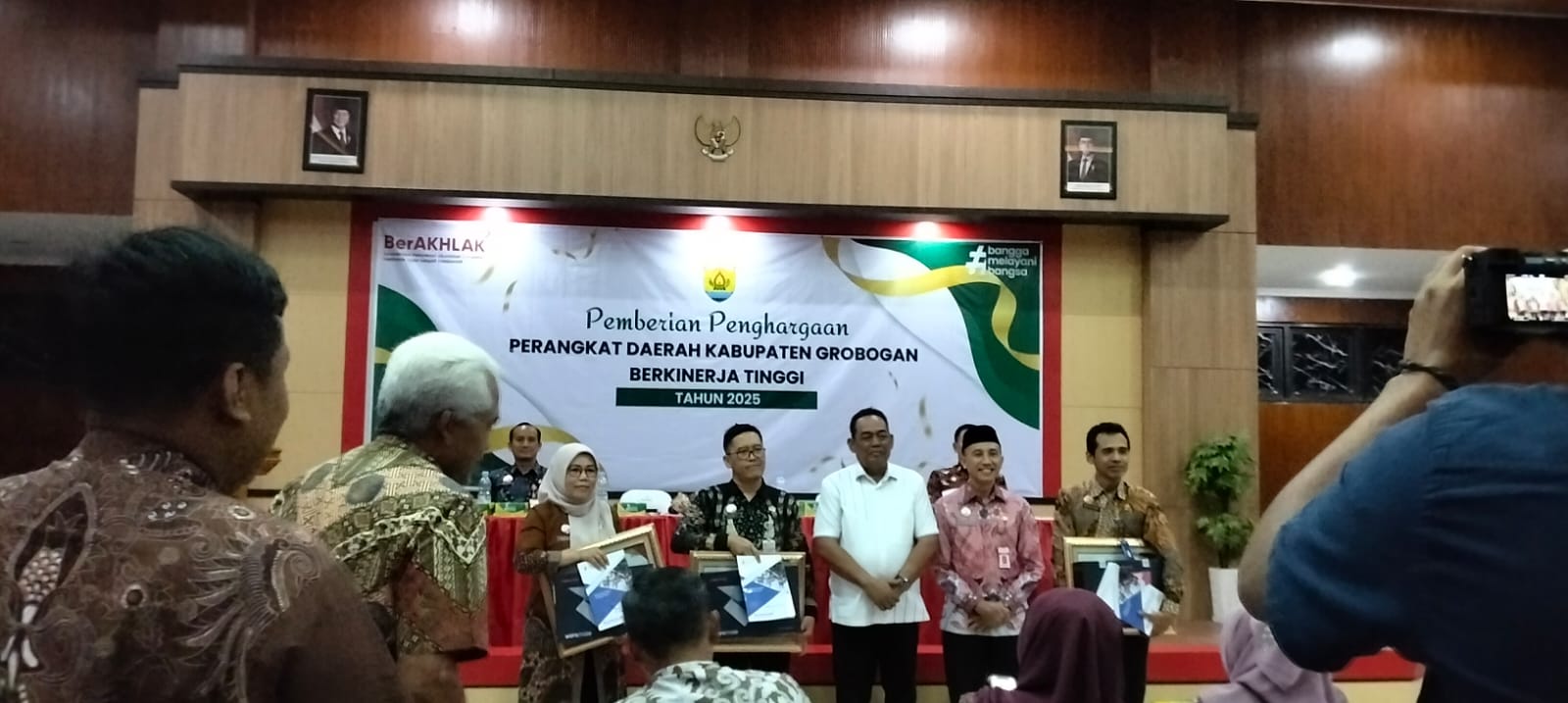 Pada hari Kamis, 12 Pebruari 2026 bertempat di Aula Dharmaloka UPTD BLK Kab Grobogan telah dilaksanakan acara Penyerahan Hasil Penilaian Kinerja Perangkat Daerah Tahun 2025. Acara tersebut dihadiri oleh Bupati Grobogan, Sekda Grobogan dan para Kepala OPD Kab Grobogan. Dalam sambutannya Bupati Grobogan menghimbau kita semua untuk bekerja dengan baik, menyelesaikan pekerjaan dan menjaga kebersamaan dengan baik agar pemerintahan dapat berjalan dengan lancar. Lebih lanjut Bupati Grobogan mengatakan perlu kehati hatian kita dalam bekerja, bekerja menurut prosedur yang ada. Bekerja dengan baik, jangan terlalu santai, agar kiinerja kita bertambah baik. Dalam akhir sambutannya beliau mengatakan bahwa penilaian kinerja diperlukan untuk memastikan bahwa kebijakan kebijakan dari propinsi dan pusat sudah kita laksanakan dengan baik. Bekerja pedomannya adalah aturan. Acara berjalan tertib dan lancar.