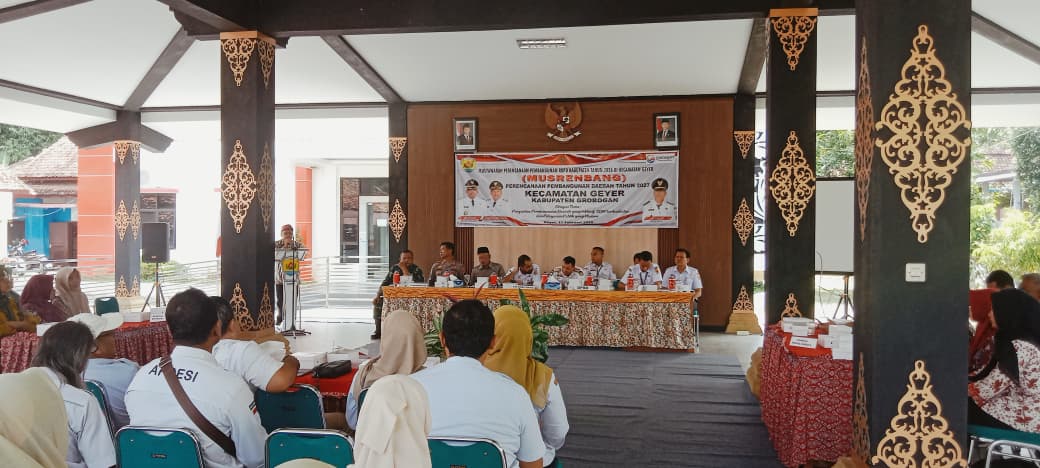 Rabu, 11 Februari 2026 bertempat di Pendopo Kecamatan Geyer telah dilaksanakan Musyawarah Perencanaan Pembangunan Tahun 2026 untuk Perencanaan Pembangunan Daerah Tahun 2027. Hadir dalam acara tersebut perwakilan Anggota DPRD dari dapil I serta dari Tim monitoring Musrenbangcam Kabupaten, forkompicam Geyer serta para peserta dari utusan pemerintah desa, dinas instansi tingkat kecamatan serta unsur - unsur terkait. kegiatan dimaksud adalam bagian dari penggalian usulan dari pemerinta desa dimana usulan merupakan kewenangan pemerinatah kabupaten Grobogan. yang terdiri dari 3 rumpun yaitu sarana prasarana, ekonomi dan Sosial Budaya. acara berjalan dengan lancar serta mengahasilkan usulan yang nantinya akan dibahas di murenbangkab.