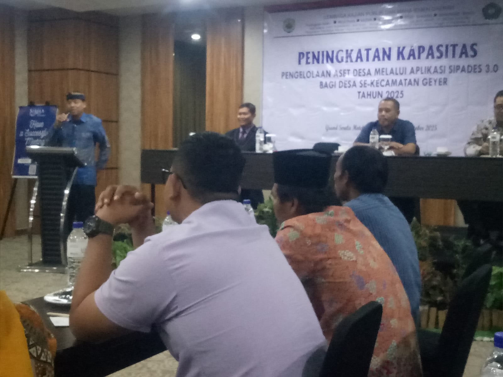 Pada hari Jum'at - Sabtu 24-25 Oktober 2025 bertempat di Ruang Rapat Grand Serela Hotel Jogjakarta, telah dilaksanakan Bimbingan Teknis Aplikasi berbasis web SIPADES versi 3.0 ( Sistem Pengelolaan Aset Desa ). Kegiatan diselenggarakan oleh Lembaga Kajian Publik dan Manajemen Daerah dengan Narasumber Kepala Dinas, Kepala Bidang serta staf Dinas Pemberdayaan Masyarakat dan Desa Kabupaten Grobogan dan Camat Geyer. Peserta berasal dari perwakilan 2 ( dua ) orang Perangkat Desa yang membidangi Aset Desa. Adapun kegiatan bertujuan untuk melakukan pendataan seluruh aset yang dimiliki oleh Pemerintah Desa. acara berjalan dengan antusias peserta yang tinggi dan berjalan dengan lancar.